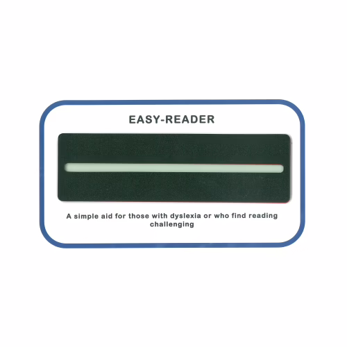 EASY-READER is a convenient and discrete ruler designed to assist those with visual stress or dyslexia. It highlights and isolates a line of text to make it easier to focus on those words and keep the the reader’s place on the page.
