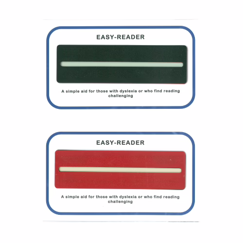 EASY-READER is available with the reading window tinted in four different colours, red, blue, yellow and green. Choose the one that works best for you!