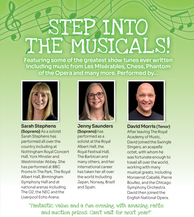 With special thanks to performers Sarah Stephens, Jenny Saunders and David Morris, Staunton Harold Estate, Digital Wordcrafts Ltd, Geoff Johnson Design and Rosemary Conley Enterprises, and with particular thanks to our Headline Sponsor for the evening, Healy Group.